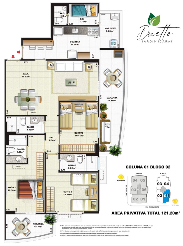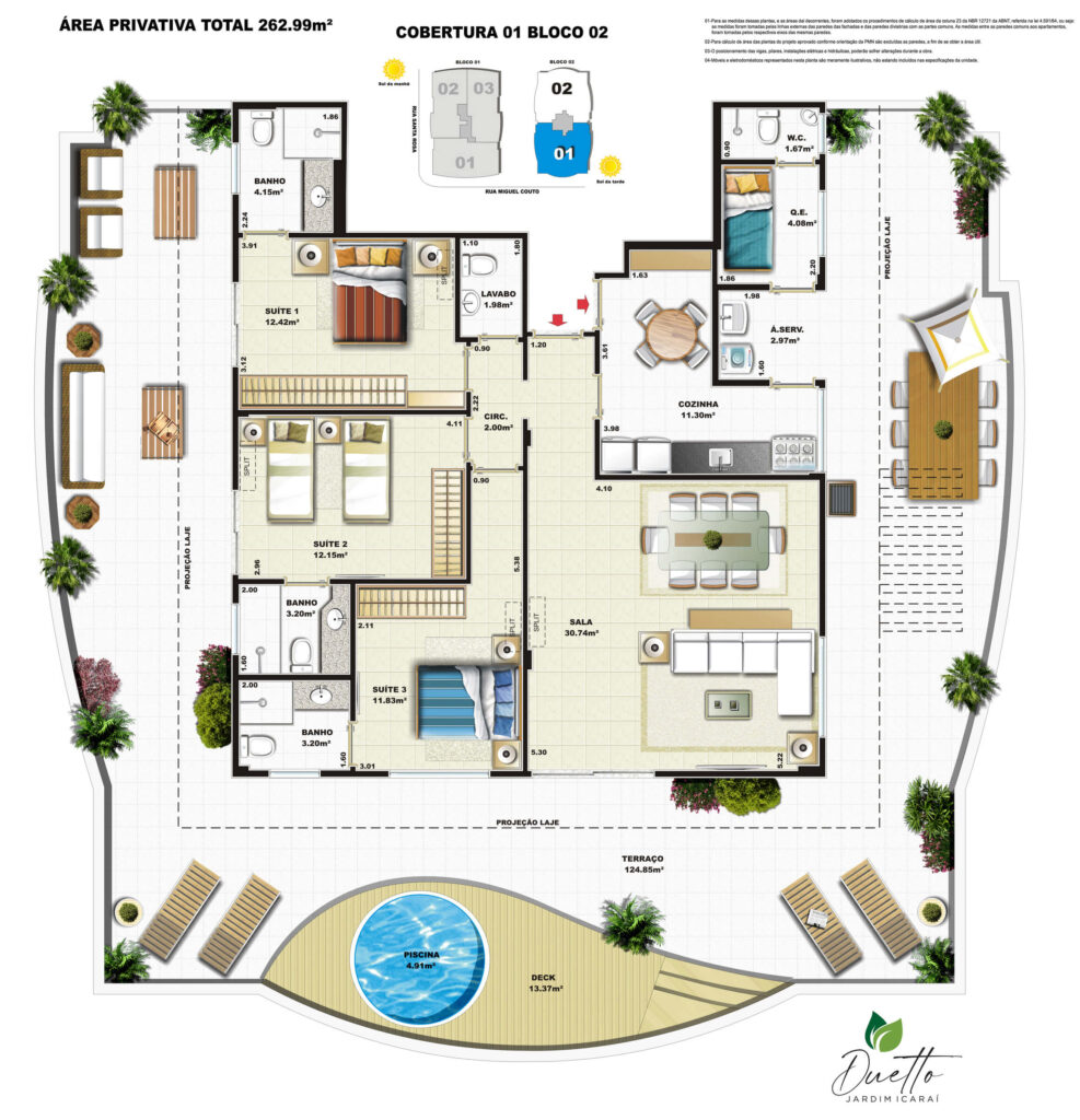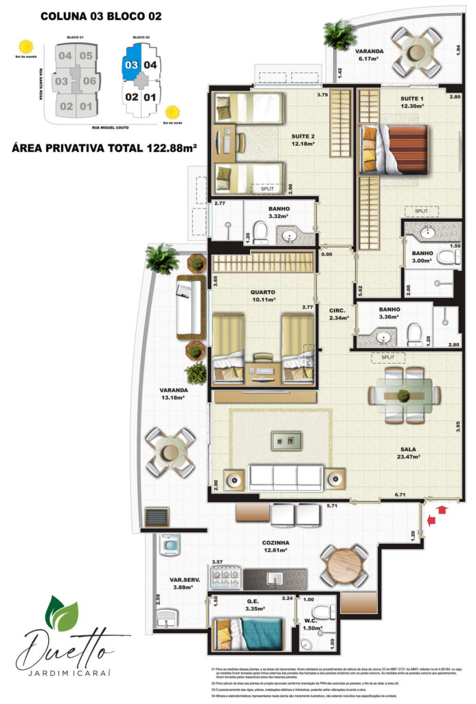 2 e 3 QUARTOS (1 e 2 suítes) 97,99m² à 122,88m²